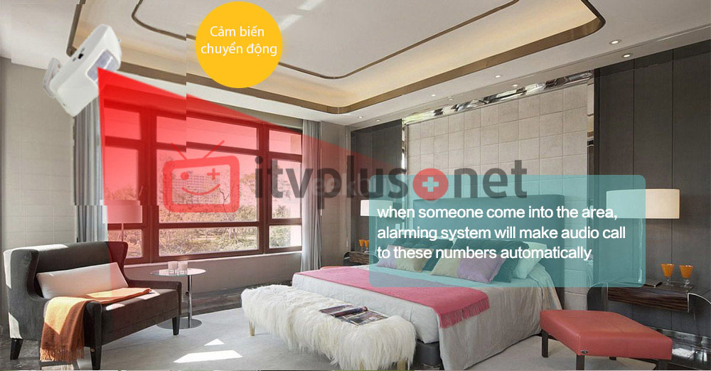 - Có thể đặt trước 5 số điện thoại, khi báo động, hệ thống sẽ thực hiện cuộc gọi âm thanh đến những con số này tự động