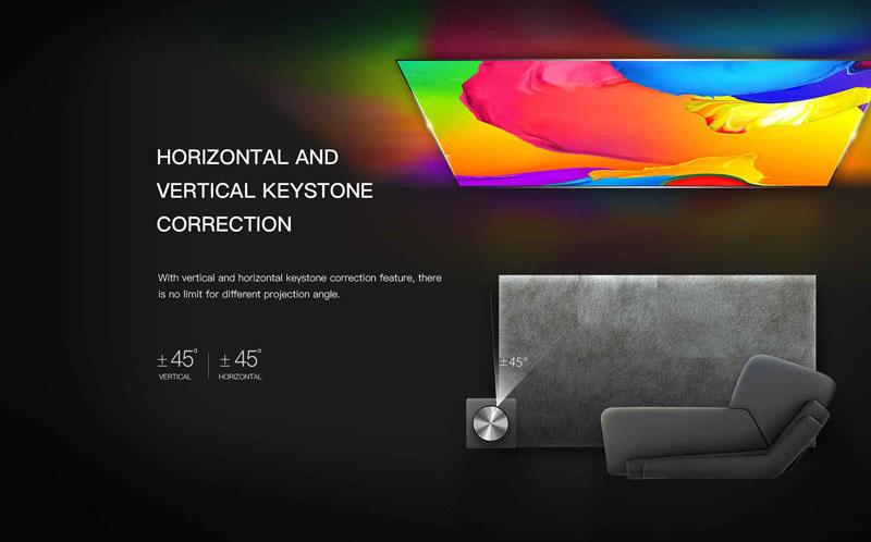 * Chế độ tùy chỉnh khung hình theo cả chiều dọc và chiều ngang và chế độ tự động lấy nét ( Auto focus) giúp cho việc lựa chọn vị trí đặt máy chiếu dễ dàng hơn bao giờ hết, mang đến trải nghiệm đặc sắc ở nhiều không gian khác nhau.