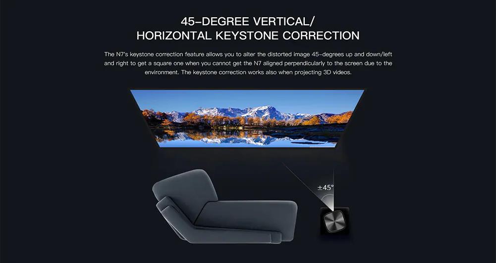 Chế độ tùy chỉnh khung hình theo cả chiều dọc và chiều ngang và chế độ chiếu sau màn giúp cho vị trí đặt máy chiếu không còn là nỗi lo đối với N7