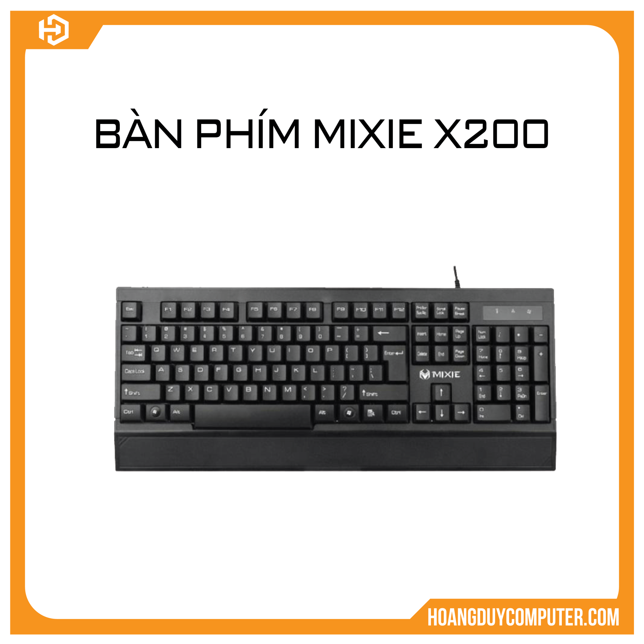 Bàn phím Mixie X200 USB Hàng chất lượng đảm bảo, độ bền cao, nhập khẩu Thái Lan Phím bấm êm, độ bền cao Phím khắc Laser, chống bay chữ cực tốt Giao tiếp USB, dùng được cho cả PC & Laptop Hỗ trợ bàn phím số giúp nhập liệu nhanh hơn