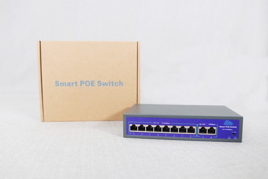 - Giao diện : 8 cổng PoE 10 / 100Mbps và 2 cổng up Lan 100Mbps.