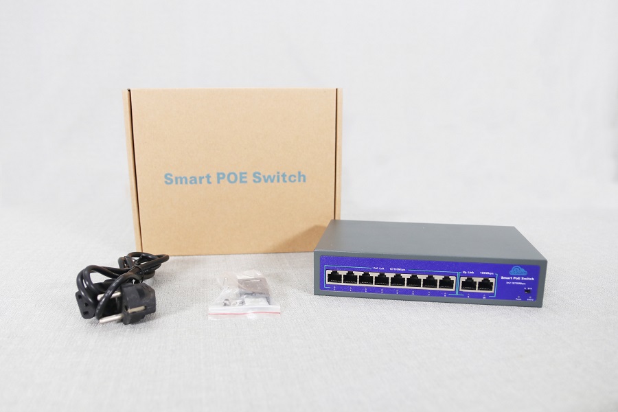 - Bộ sản phẩm bao gồm : 1 switch PoE 8+1, 01 dây nguồn AC , 01 carton
