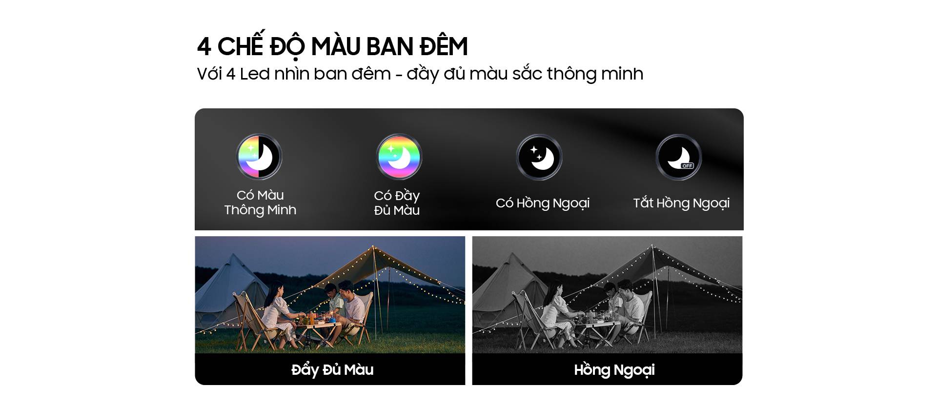 Được trang bị 4 chế độ nhìn đêm, có thể hiển thị hình ảnh giám sát tầm nhìn ban đêm có màu sắc rất rõ ràng ngay cả trong đêm tối. Hiệu suất nhìn đêm siêu rõ đa ánh sáng mới được nâng cấp