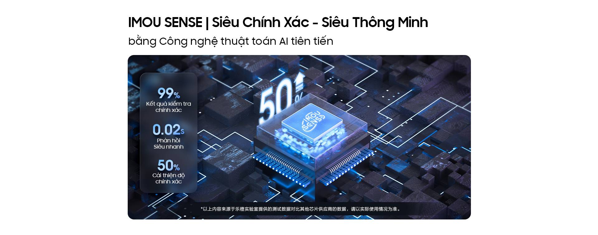 Với chip điện toán cao, phân tích dữ liệu hiệu quả. Tính toán và xử lý phân tích, giúp thiết bị Lechen của bạn chính xác hơn và thông minh hơn, thực sự hiện thực hóa khả năng bảo vệ thông minh. Cộng với IMOU SENSE bao gồm thuật toán video, thuật toán âm thanh, thuật toán điều hướng, thuật toán nhận thức, áp dụng công nghệ tiên tiến trong ngành