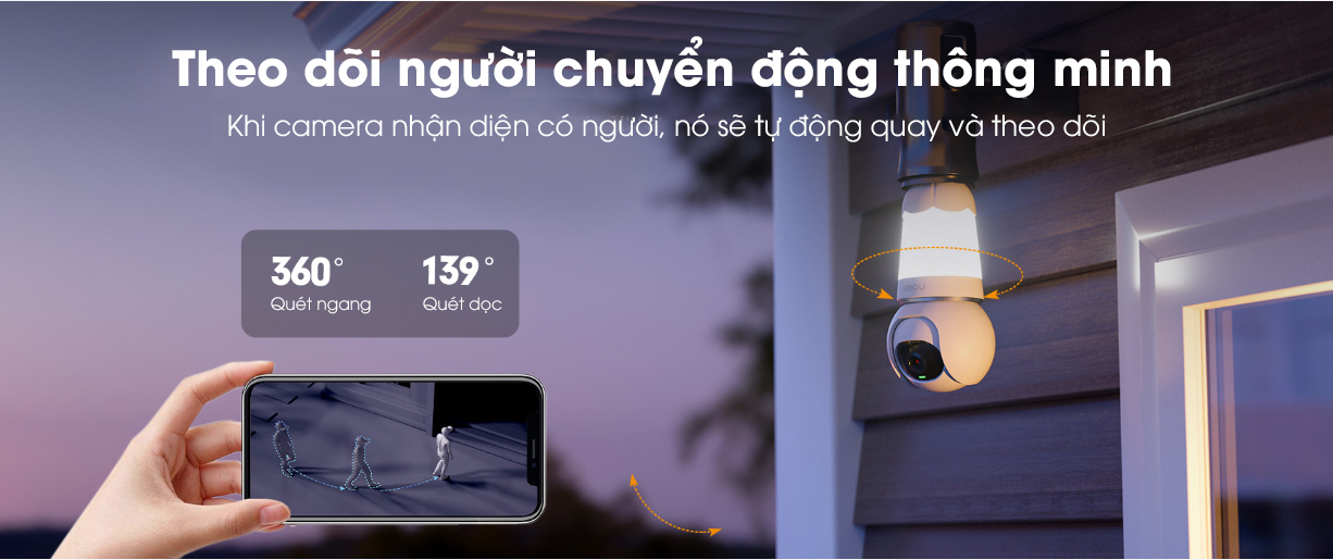 Camera Cũng Sẽ Chuyển Động Theo với tính năng Smart Human Tracking. Phát hiện các đối tượng là người chuyển động, camera sẽ tự động theo dõi và gửi video và cảnh báo về điện thoại