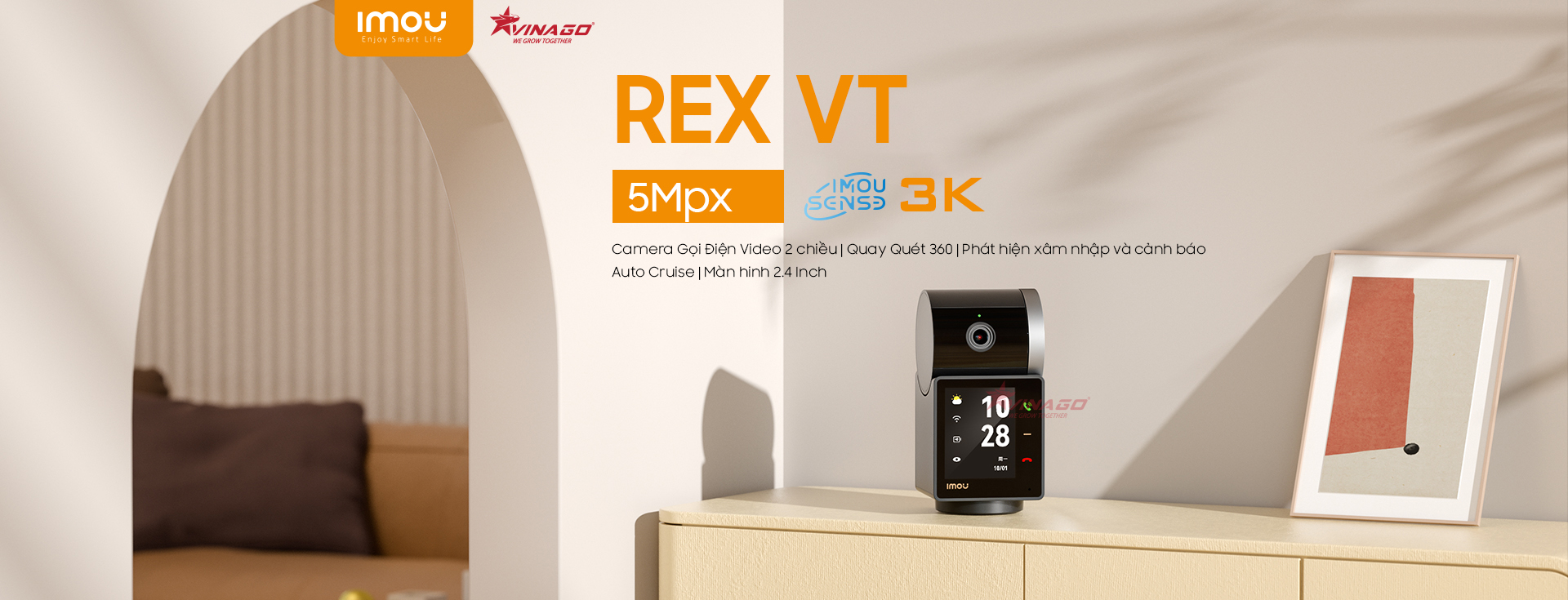 IMOU REX VT 5MP là dòng Camera Wifi Gọi Video 2 Chiều trực tiếp đầu tiên được tích hợp thêm màn hình để thực hiện cuộc gọi Video vô cùng dễ dàng. IMOU REX VT Với tính năng giám sát trực tiếp 5MP với chuẩn hình ảnh 3K siêu nét và các tính năng xoay 0 ~ 355 ° & -5 ~ 80 °.