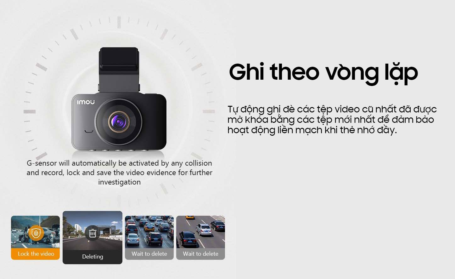 Tự động ghi đè các tệp video cũ nhất đã được mở khóa bằng các tệp mới nhất để đảm bảo hoạt động liền mạch khi thẻ nhớ đầy.
