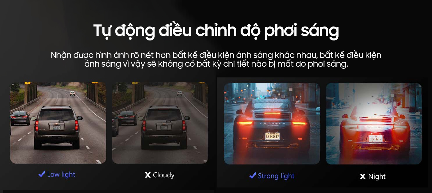 - Xem ngày và đêm với sự khác biệt về chất lượng và rõ ràng hơn nhiều so với tất cả các camera hành trình ô tô khác