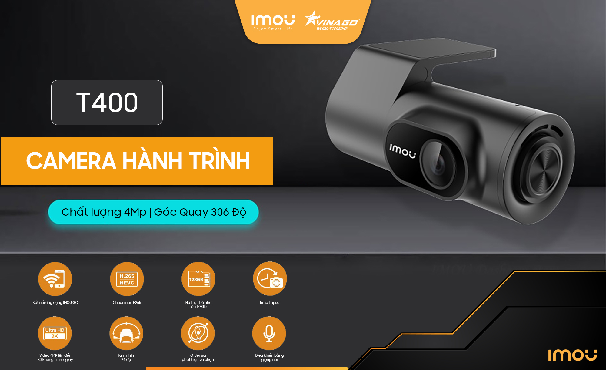 Camera hành trình Imou T400 Thân Mini Ghi Hình Vòng Kết Nối Ứng Dụng 124 Độ, Công nghệ FOV Hỗ Trợ Thẻ nhớ lên tới128GB Hệ Thống Đa Ngôn Ngữ