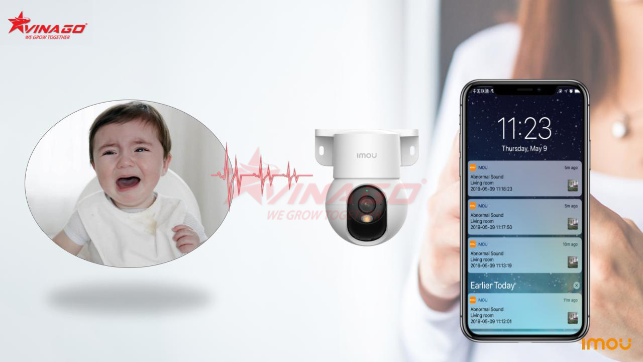 Nhờ tính năng AI tiên tiến, camera sẽ gửi cảnh báo ngay khi phát hiện âm thanh trong khu vực giám sát.