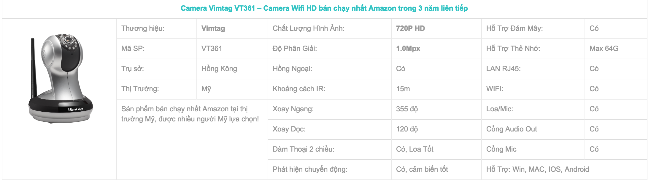 Vimtag VT 361 - Tự hào là chiếc Camera bán chạy nhất Amazon với khá nhiều tiện ích và công dụng được tích hợp trên VT-361