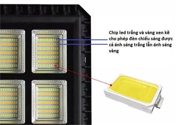 - Đặc biệt chip LED được bố trí xen kẽ màu vàng và màu trắng cho phép đèn chiếu sáng được màu trắng hoặc màu vàng và có thể kết hợp màu trắng và vàng cùng 1 lúc
