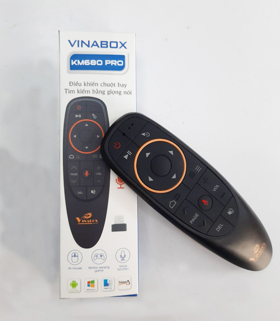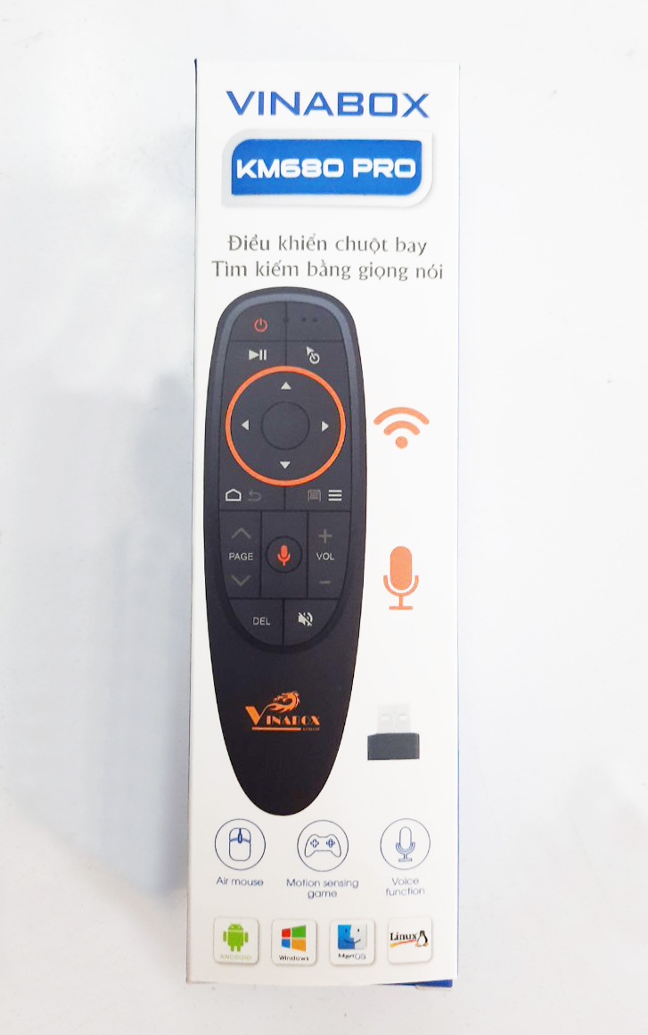 VINABOX REMOTE KM680 Pro là thế hệ điều khiển tích hợp mic voice và chuột bay với thiết kế kiểu dáng độc đáo được ra mắt giữa năm 2020. Tương thích với tất cả các đầu Android TV Box trên thị trường. Đối với các thiết bị có tích hợp chức năng tìm kiếm bằng giọng nói thì chỉ cần bấm phím Mic trên điều khiển và nói, không phải thực hiện thêm các thao tác nào khác.