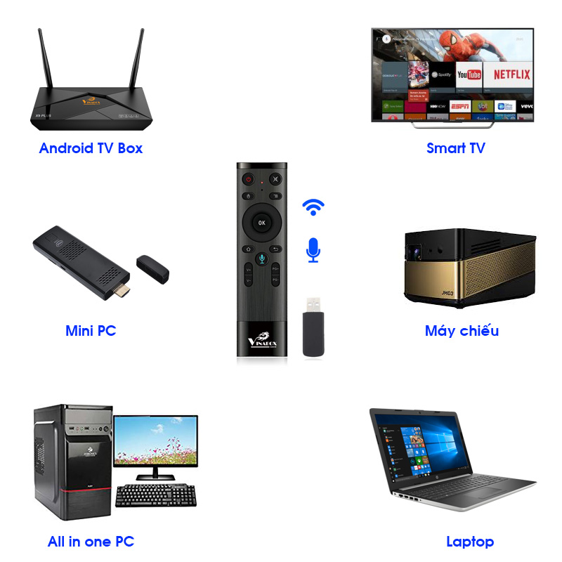 VINABOX REMOTE KM650V là thế hệ điều khiển tích hợp mic voice mới nhất năm 2019. Tương thích với tất cả các đầu Android TV Box trên thị trường. Đối với các thiết bị có tích hợp chức năng tìm kiếm bằng giọng nói thì chỉ cần bấm phím Mic trên điều khiển và nói, không phải thực hiện thêm các thao tác nào khác.