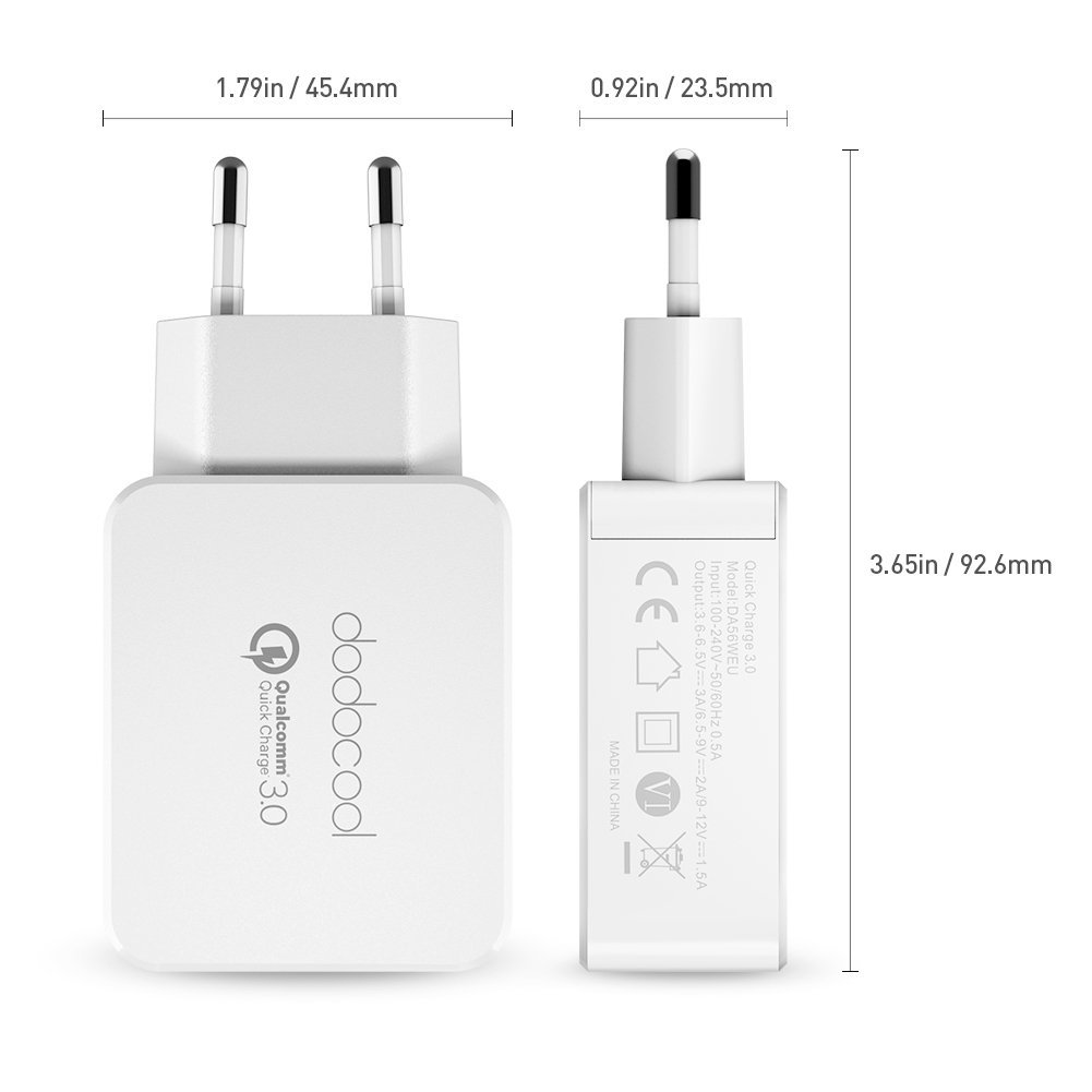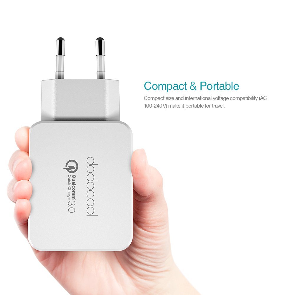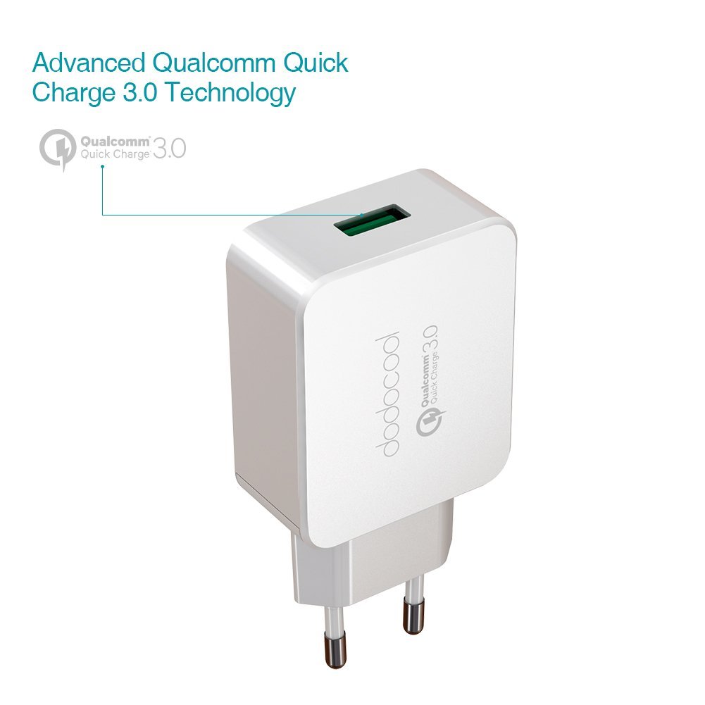 Bộ sạc nhanh USB 3.0 với công nghệ sạc pin mới nhất của Dodocool. Đối với các thiết bị Android hỗ trợ Quick Charge 3.0 cho tốc độ sạc nhanh hơn 4 lần so với bộ sạc thông thường, nhanh hơn 27% và hiệu quả hơn 38% so với Quick Charge 2.0.