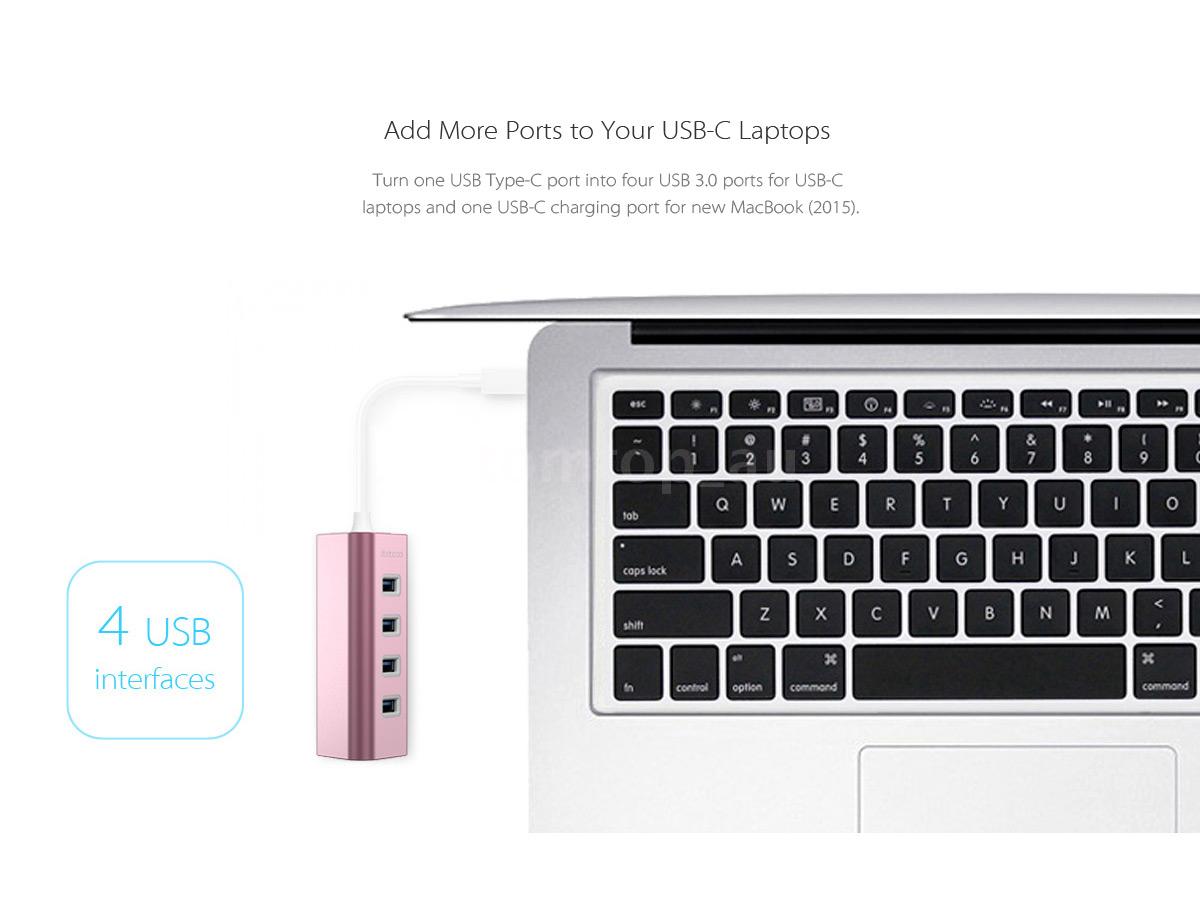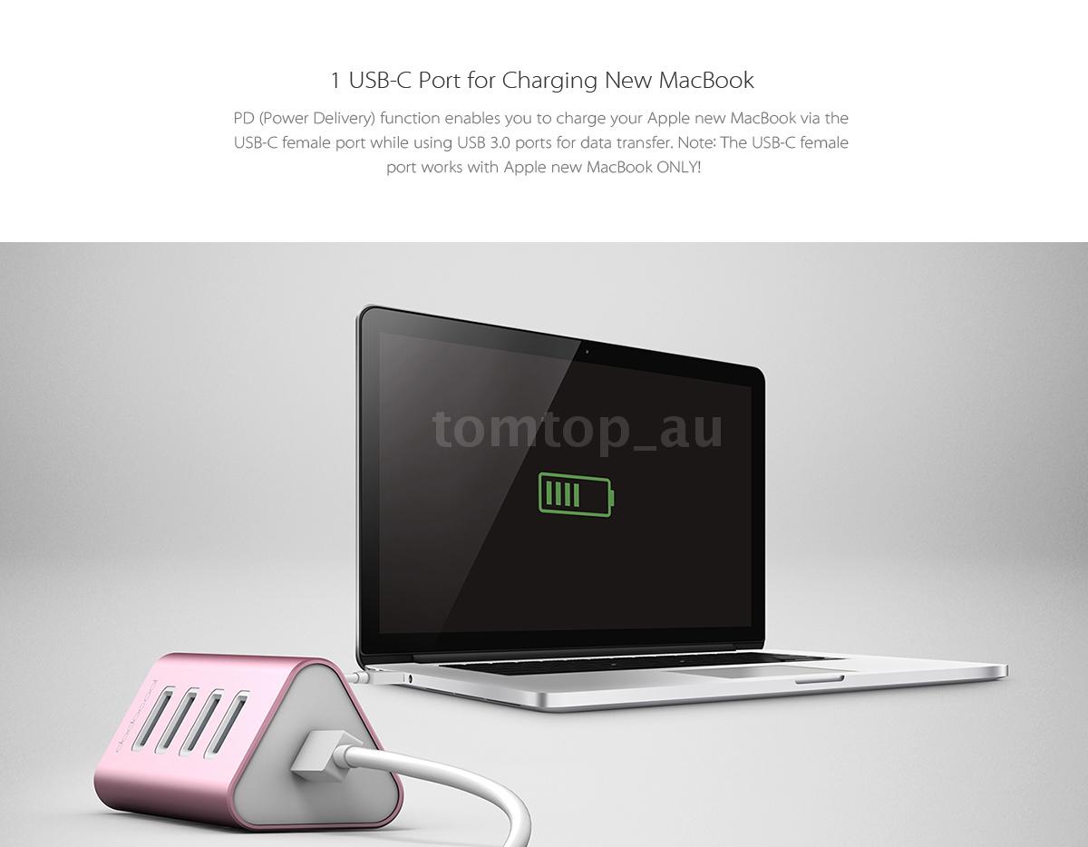 Chuyển một cổng USB Type-C thành bốn cổng USB 3.0 cho các thiết bị sử dụng cổng USB Type C và một cổng USB-C Female để sạc cho các loại Macbook đời mới