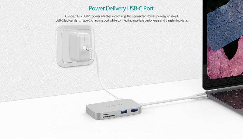 Cho phép bạn sạc MacBook Pro, MacBook, Google Chromebook Pixel hoặc các thiết bị được trang bị cổng USB-C hỗ trợ tính năng Power Delivery trong khi đồng thời kết nối hoặc truyền dữ liệu với các thiết bị ngoại vi