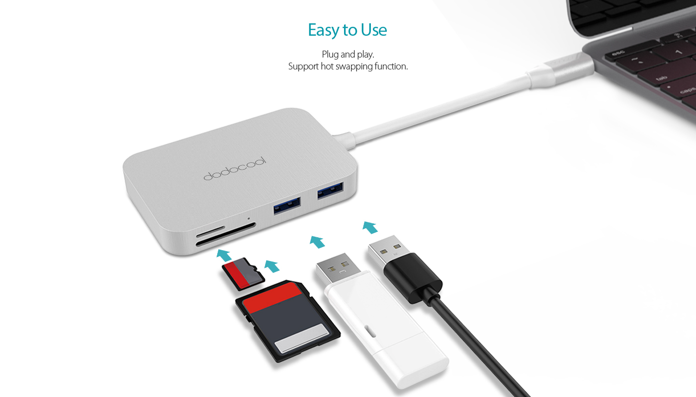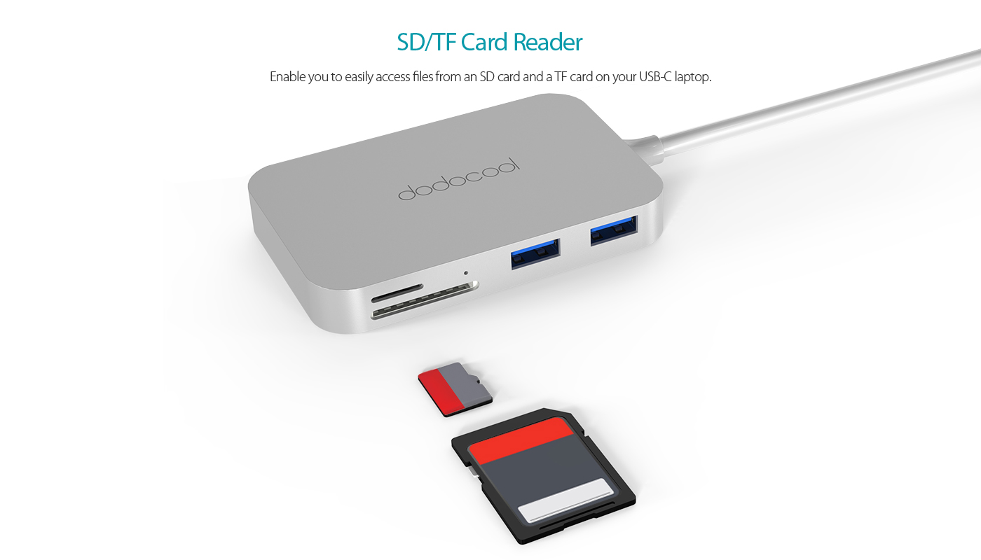 Cho phép bạn dễ dàng truy cập dữ liệu từ thẻ SD hoặc thẻ TF trên máy tính xách tay trang bị cổng USB-C.