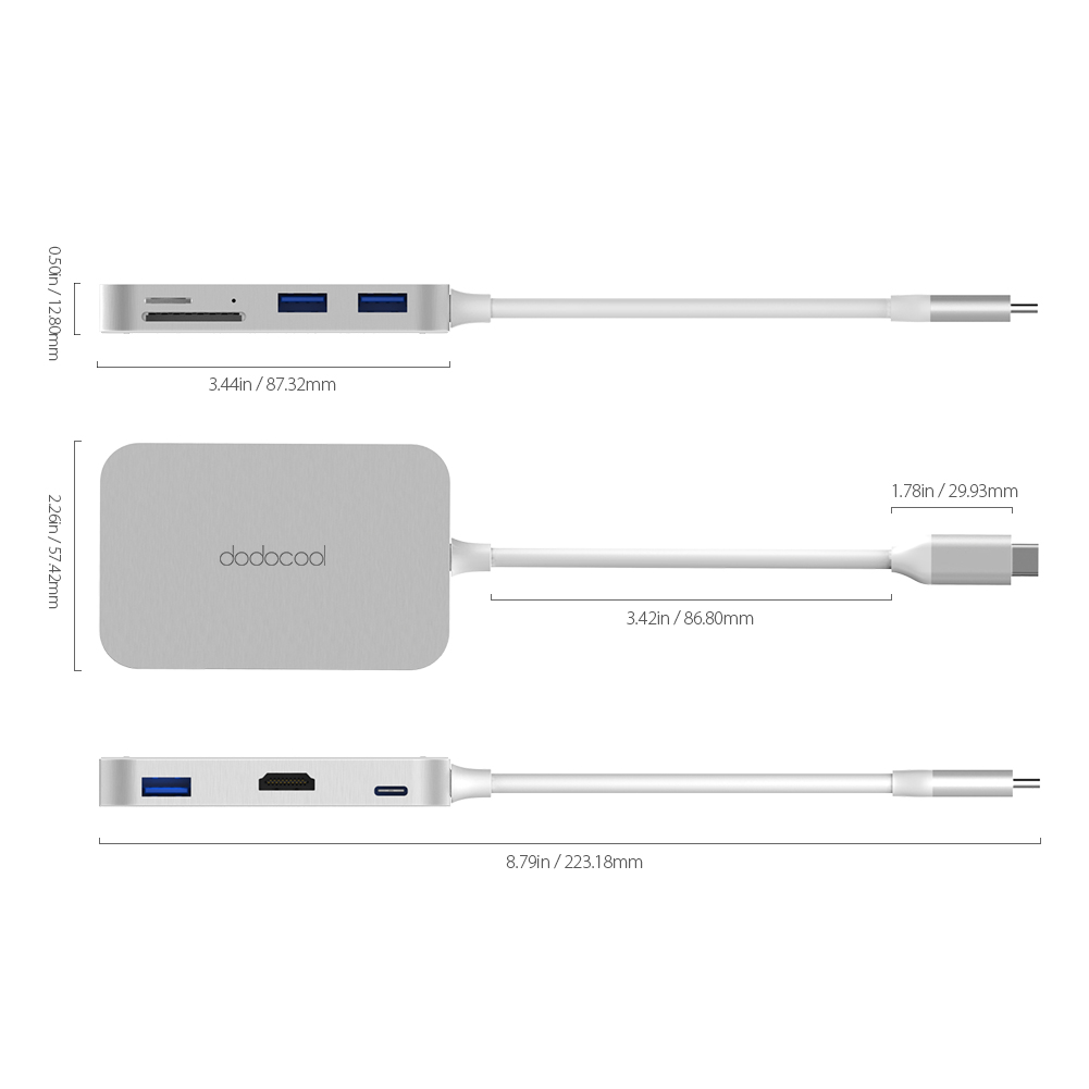 Từ một cổng USB-C (hoặc cổng Thunderbolt 3) mở rộng ra một cổng sạc pin USB-C, một cổng HDMI, ba cổng USB 3.0 tốc độ cao, một khe thẻ nhớ SD và một khe cắm thẻ nhớ TF.