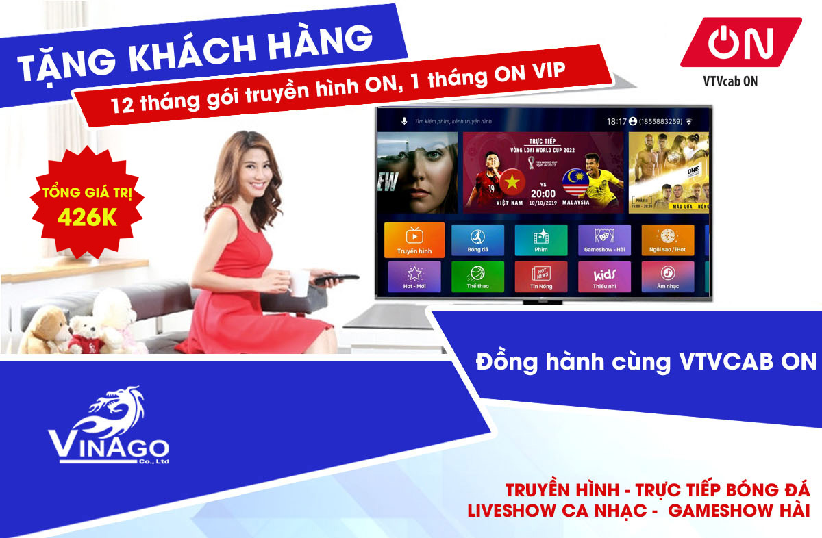 Công Ty VINAGO hân hạnh hợp tác cùng Thủ Đô Media ( Đơn vị sở hữu bản quyền Dịch Vụ Truyền Hình ON - Ứng dụng VTVCAB ON), tặng tất cả khách hàng sử dụng các thiết bị Android Box do VINAGO phân phối cụ thể: