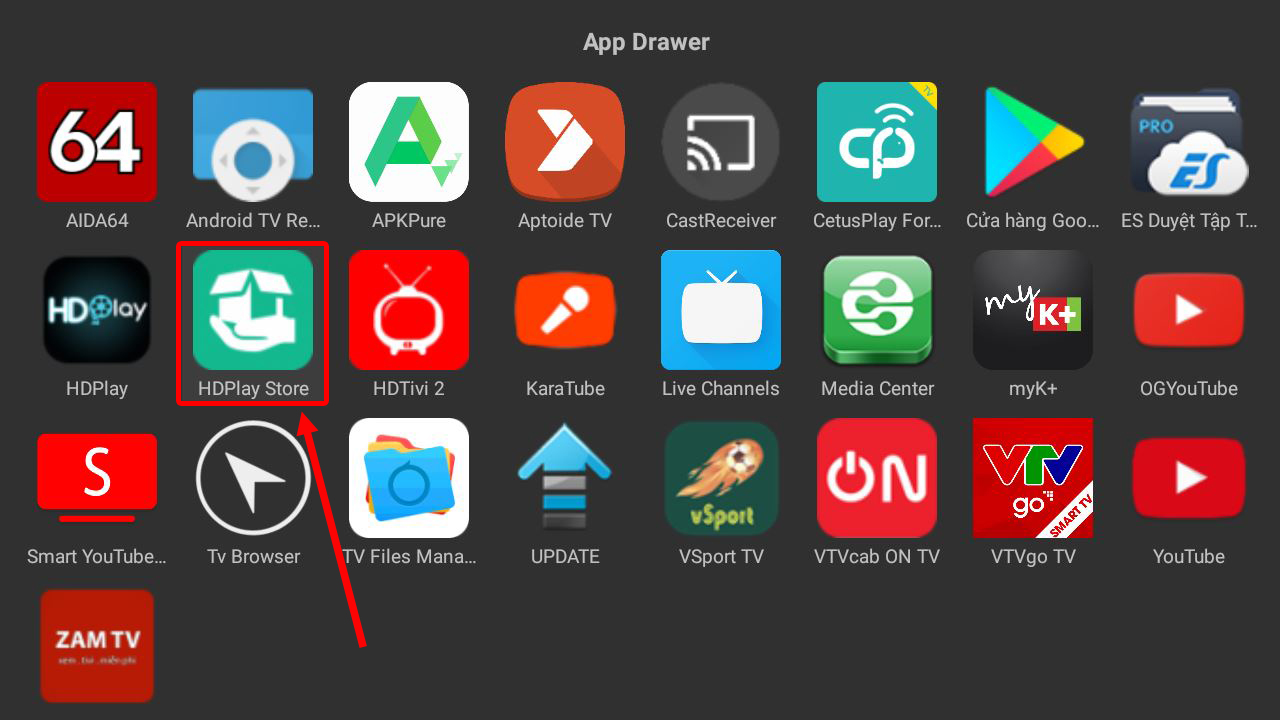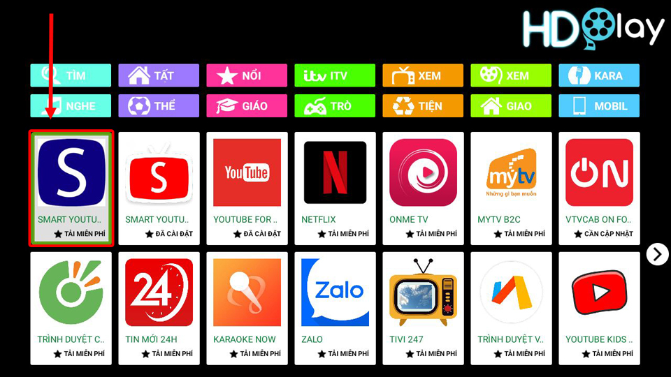 B2. Mở ứng dụng HDPLAY STORE trên đầu Android Box để cài đặt phiên bản Smart Youtube TV