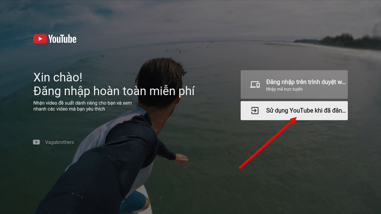 Mở ứng dụng Smart Youtube TV Beta lên và trải nghiệm sử dụng thôi. Các bạn có thể chọn đăng nhập tài khoản google hoặc không (cái này tùy mỗi người sử dụng)