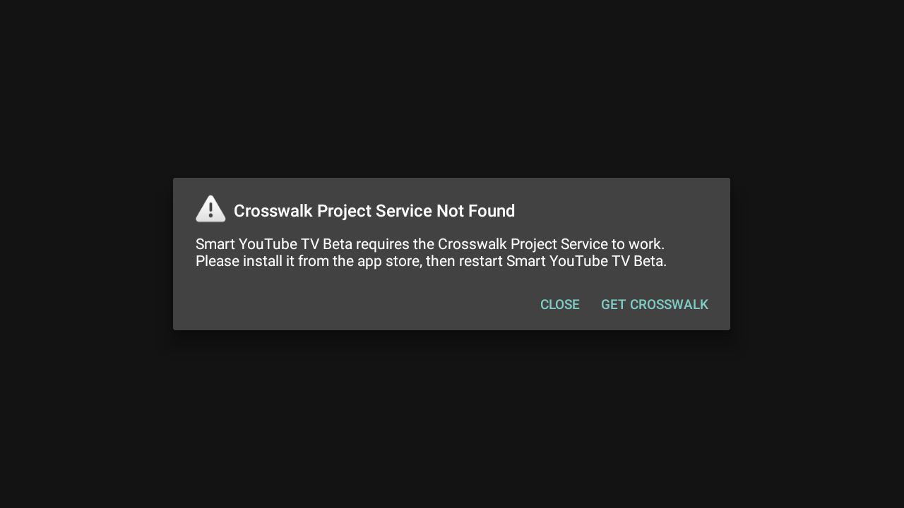 Trường hợp các bạn đọc không hết hướng dẫn hoặc vội vàng cho nhẹ nhàng mà mở Smart Youtube TV Beta lên thấy xuất hiện thông báo như hình dưới. Đó là do các bạn chưa cài đặt thư viện XWalkCoreLibrary nhé, hãy cài đặt ngay đi.