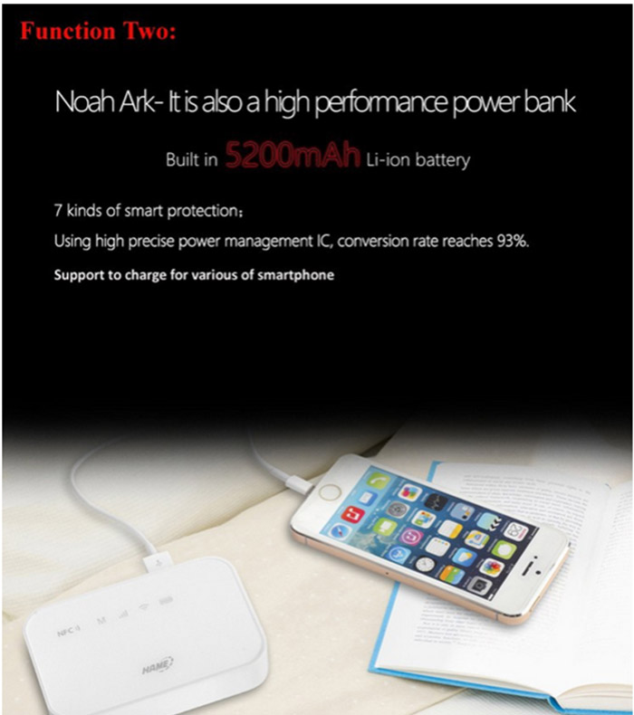 HAME A19 là Bộ phát Wifi 3G từ SIM 3G kiêm cả chức năng Sạc pin dự phòng cho điện thoại, máy tính bảng dung lượng 5.200 mAh