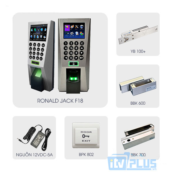 Bộ sản phẩm kiểm soát cửa ra vào Ronald Jack F18 là bộ sản phẩm kết hợp giữa đầu đọc vân tay F18 và hệ thống khóa cửa điện tử để kiểm soát cửa ra vào. Bộ sản phẩm hướng đến nhóm khách hàng là các văn phòng công ty vừa và nhỏ, với nhóm khách hàng này thường có số lượng nhân viên không quá nhiều (dưới 150 người) và thường có nhu cầu chấm công trực tiếp trên hệ thống kiểm soát cửa ra vào.