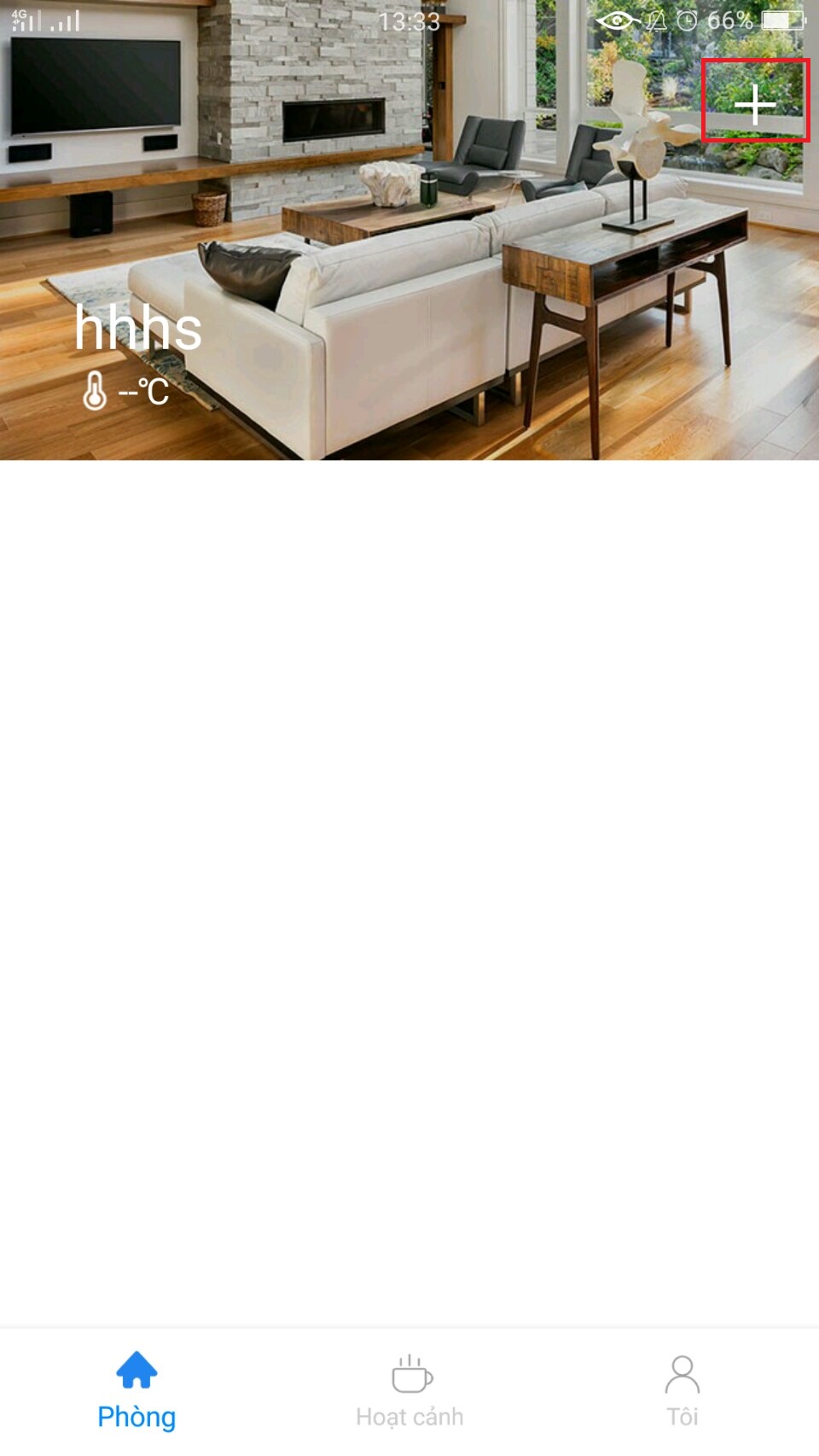 Ấn vào dấu “+” góc trên bên phải màn hình và ấn vào phần thêm thiết bị.