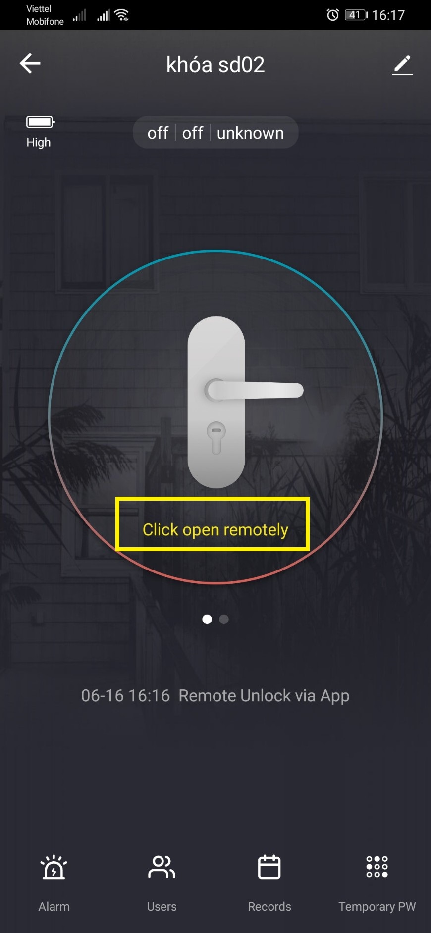Chạm vào màn hình trên khóa vân tay Himedia G2 Pro để bật màn hình sáng sau đó nhấn phím số ấn  #, sẽ có lời nhắc bằng giọng nói trên khóa và sau đó chúng ta nhấn " xác nhận " trên phần mềm cài đặt trên điện thoại để mở khóa từ xa