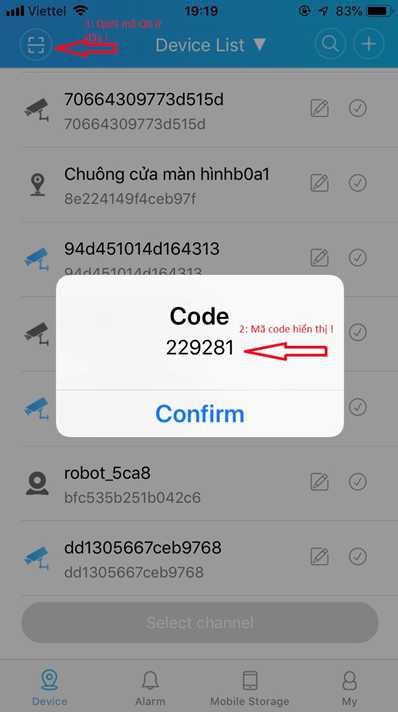 B3: Dùng xmeye quét mã QR => xuất hiện mã xác minh.