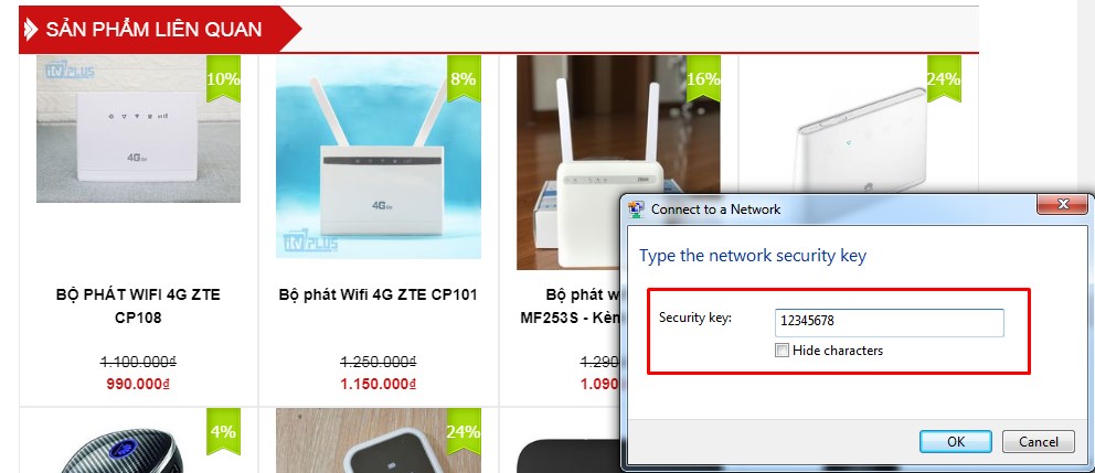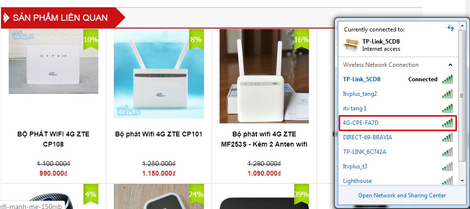 - Thao tác trên máy tính/ Laptop -> kết nối mạng wifi -> chọn đến tên thiết bị mạng (như hình bên dưới)