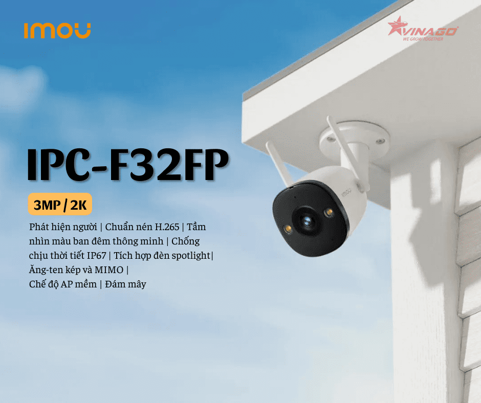 Imou IPC-F32FP 3MP là một chiếc camera an ninh cao cấp với độ phân giải 3MP, cung cấp hình ảnh sắc nét và chi tiết. Với công nghệ nén video H.265, camera giảm dung lượng tệp và tiết kiệm băng thông mạng. Tính năng ghi hình màu ban đêm cùng với chống nước và chống bụi IP67 giúp camera hoạt động hiệu quả trong mọi điều kiện thời tiết. Sự tích hợp của đèn cùng khả năng lưu trữ đám mây mang lại sự thuận tiện và linh hoạt trong việc giám sát an ninh