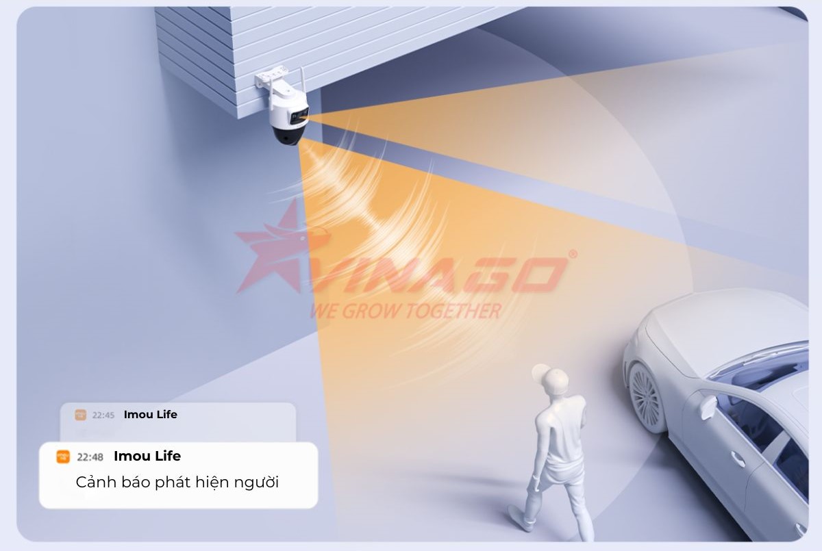 Nhờ tính năng AI tiên tiến, camera sẽ gửi cảnh báo ngay khi phát hiện con người trong khu vực giám sát.