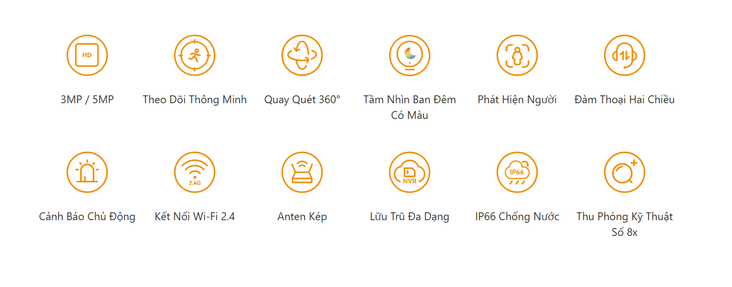 – Chuẩn nén H.265, Độ phân giải 5MP 3K xoay 355 độ