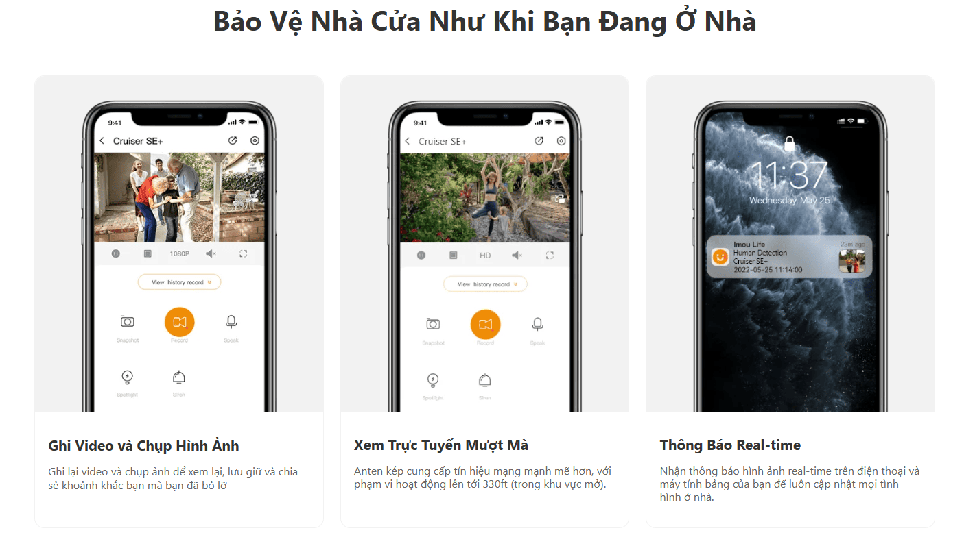 Dù bạn ở bất cứ đâu, camera luôn giám sát và bảo vệ ngôi nhà một cách liên tục, đảm bảo an ninh như khi bạn đang có mặt tại nhà.