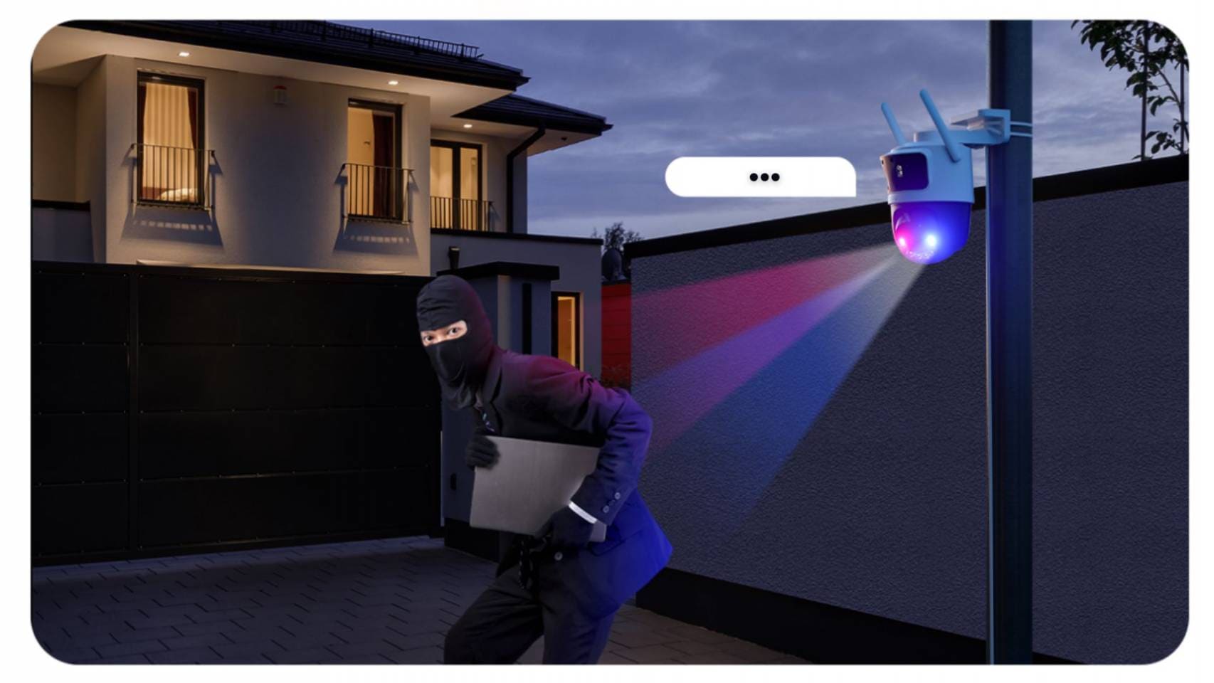 Camera sẽ tự động phát âm thanh và ánh sáng xanh đỏ khi phát hiện có người đột nhập vào khu vực giám sát, giúp răn đe những vị khách không mời. Ngoài ra, âm thanh cảnh báo có thể tùy chỉnh theo nhu cầu, cho phép chuyển đổi linh hoạt giữa chế độ đón khách hoặc chống trộm.