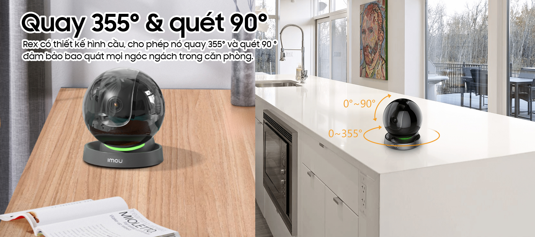 Rex có thiết kế hình cầu, cho phép nó quay 355° và quét 90 °, đảm bảo bao quát mọi ngóc ngách trong căn phòng.