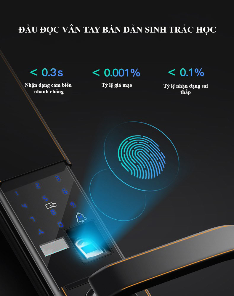 - Ứng dụng công nghệ nhận dạng vân tay bán dẫn FPC công nghệ nhận diện vân tay chính xác, phân biệt vân tay người già và trẻ nhỏ, từ chối nhận tất cả bản sao dấu vân tay nào, mở cửa thuận tiện nhanh chóng.