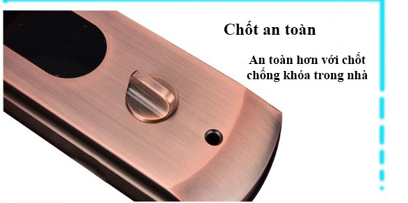 - Nút khóa an toàn bên trong: Khi người sử dụng khóa an toàn thì cửa không thể mở từ bên ngoài. Ngay cả khi sử dụng mã PIN hoặc vân tay (trừ chìa khóa cơ)
