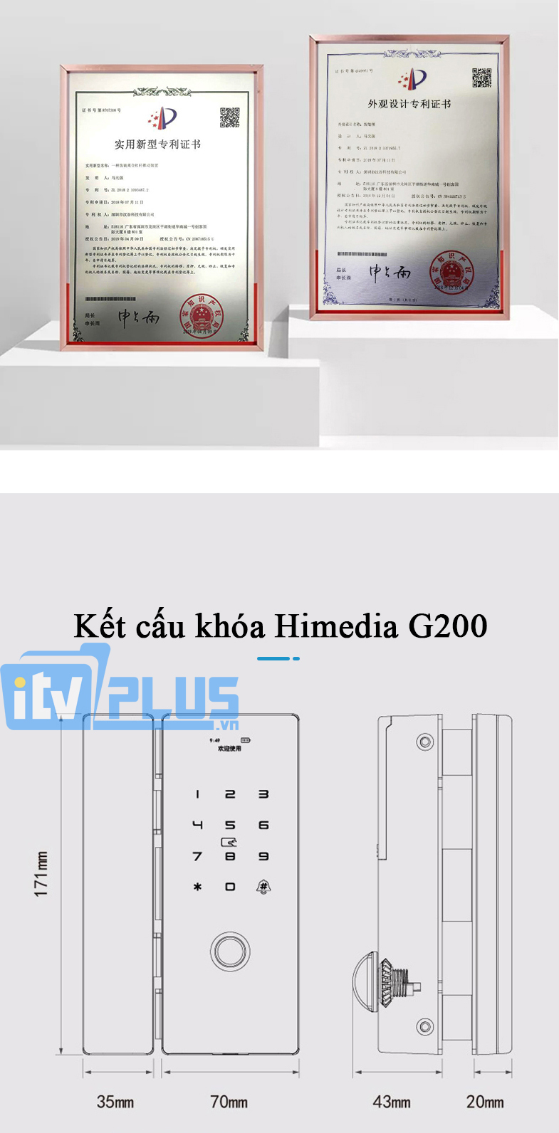Khóa cửa Himedia G200 được itvplus nhập khẩu và phân phối chính hãng tại Việt Nam, sản phẩm được bảo hành 24 tháng, kèm chương trình khuyến mại đặc biệt tặng ngay 01 camera vitacam trị giá 1.200.000 VNĐ cho khách hàng lắp đặt sản phẩm khóa cửa kính Himedia G200