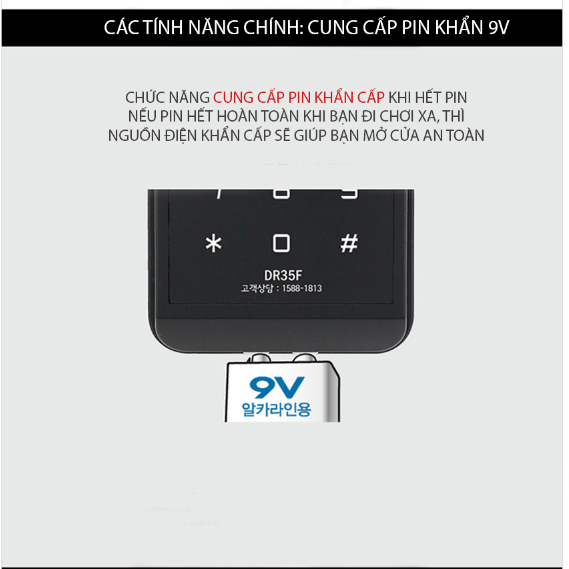 Trong trường hợp Pin hết mà chưa kịp thay. Bạn có thể kích hoạt nguồn điện 9V khẩn cấp để mở cửa.