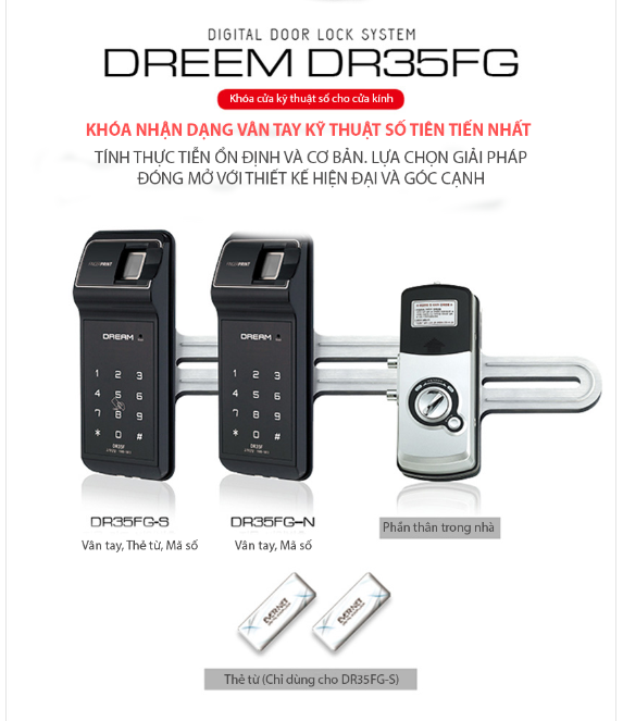 Khóa vân tay cửa kính Dream DR35FG là dòng khóa thông minh dành cho phân khúc cửa kính cường lực. Là thương hiệu được sản xuất tại Hàn Quốc, khóa có đầy đủ các tính năng vân tay, mã số và thẻ từ.