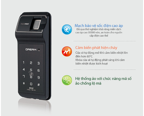 – Khóa DREAM DR35PG có mạch bảo vệ sốc điện cao áp: