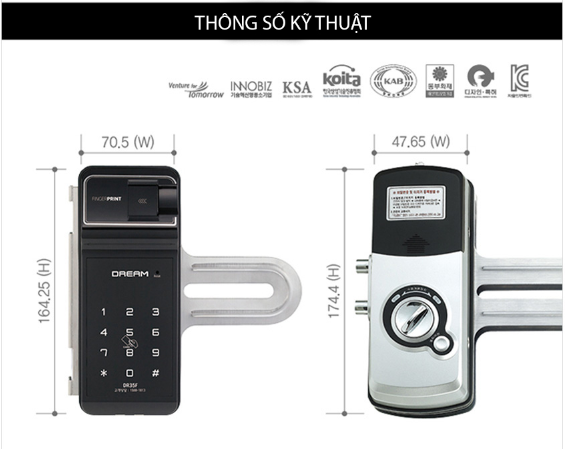 Thông số kỹ thuật khóa cửa kính vân tay DREAM DR35FG (LH600FG-SN)