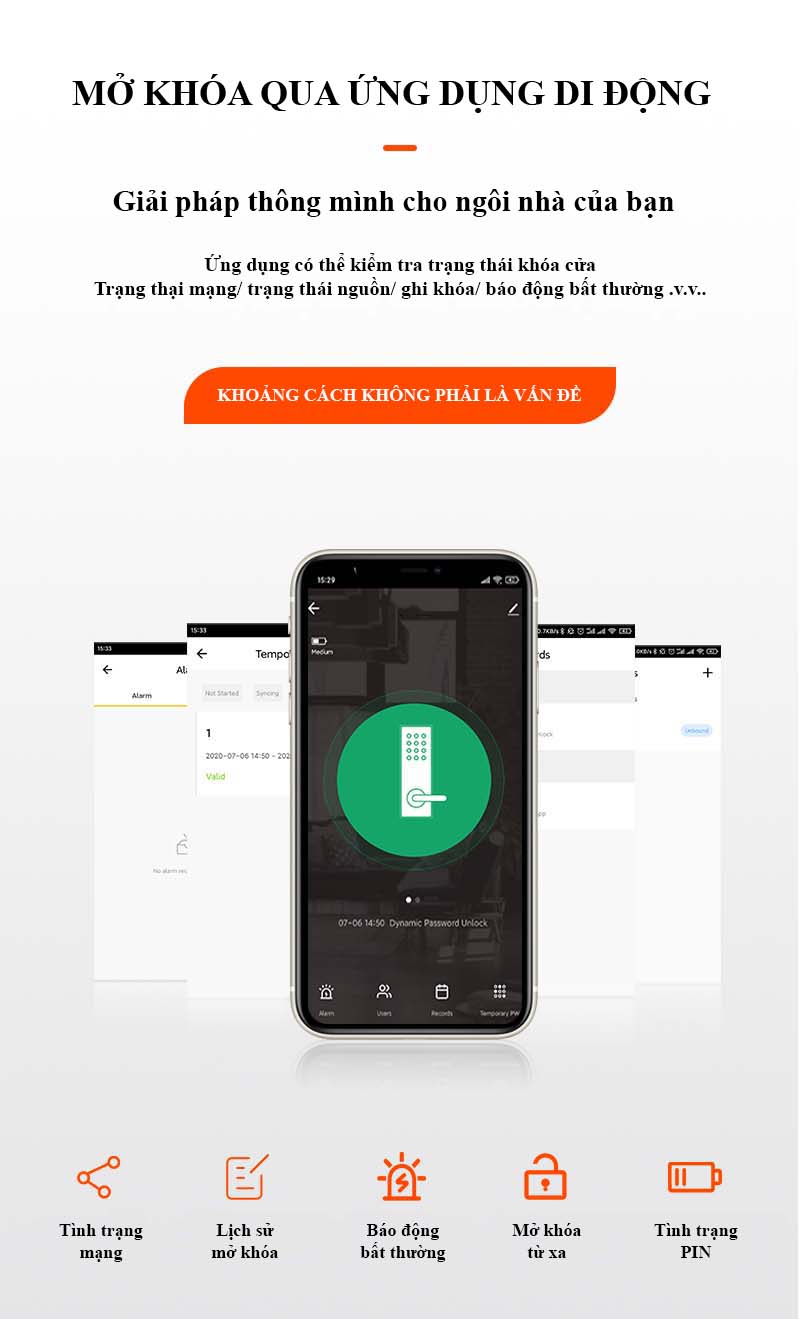 - Cảnh báo khi có người phá khóa, hỏa hoạn, hết pin.