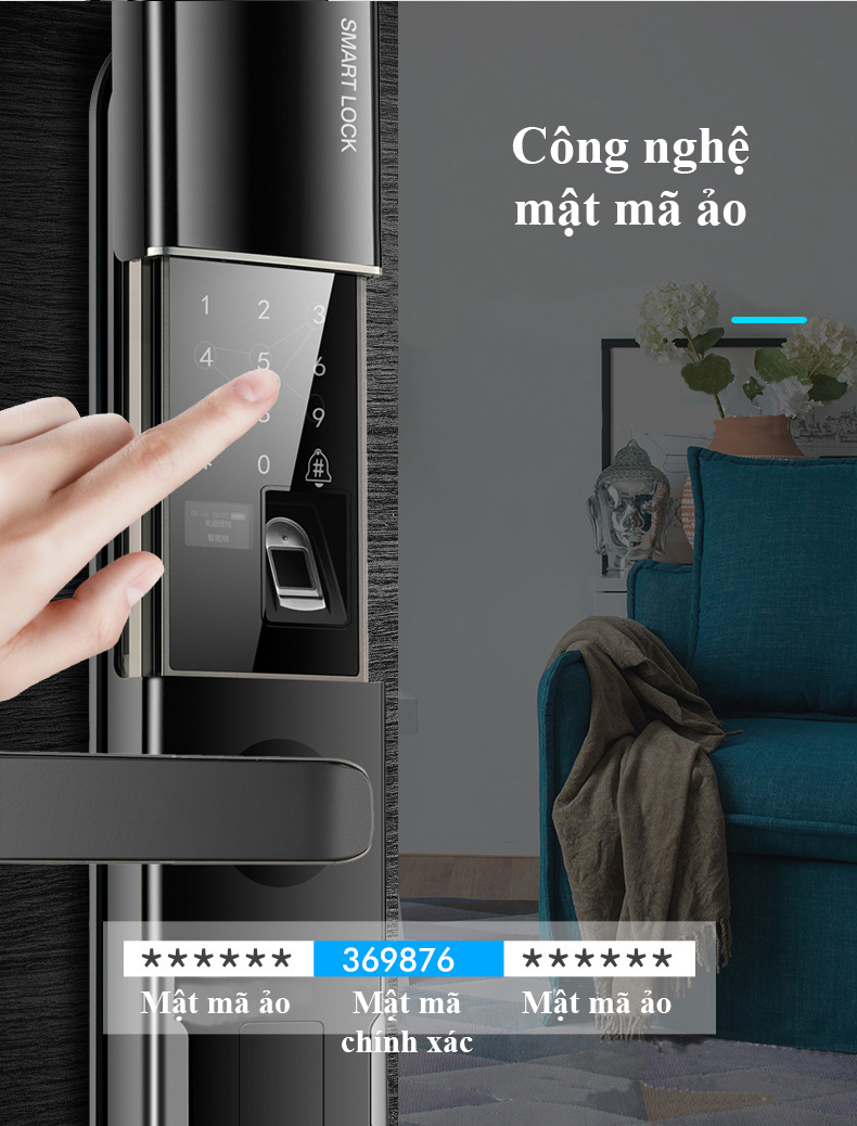 - Công nghệ Mã Số Ảo: cho phép nhập thêm các số trước và sau mã số chống lộ mật khẩu ngay cả khi bị nhìn trực tiếp