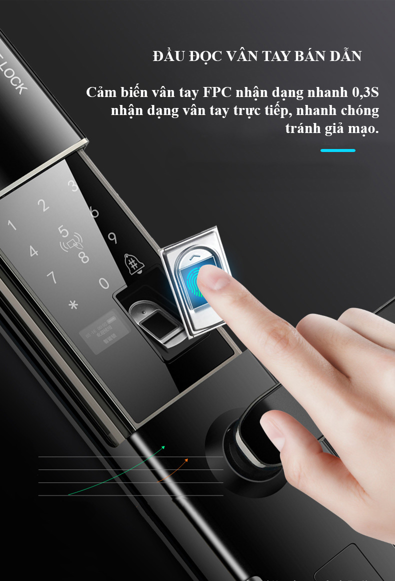- Ứng dụng công nghệ nhận dạng vân tay bán dẫn FPC công nghệ nhận diện vân tay chính xác, phân biệt vân tay người già và trẻ nhỏ, từ chối nhận tất cả bản sao dấu vân tay nào, mở cửa thuận tiện nhanh chóng.