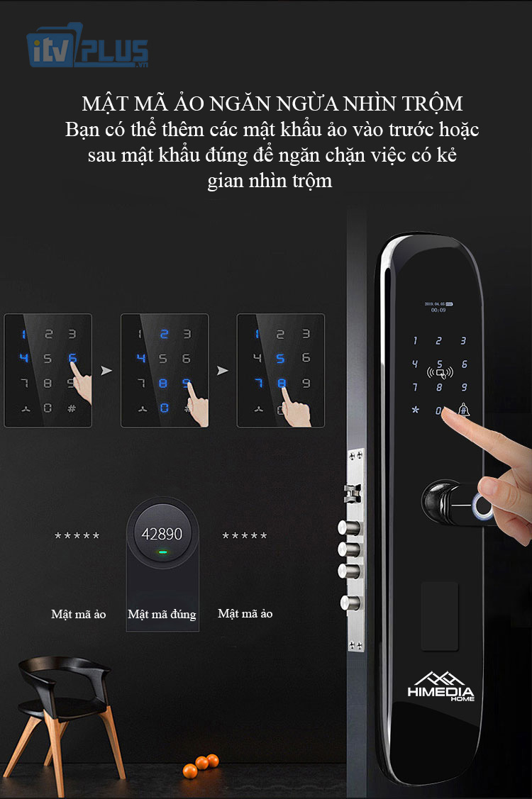 - Công nghệ Mã Số Ảo: cho phép nhập thêm các số trước và sau mã số chống lộ mật khẩu ngay cả khi bị nhìn trực tiếp